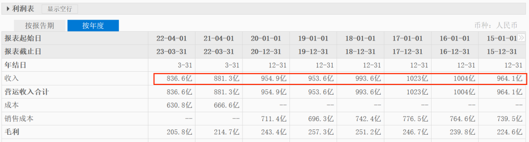 不過大潤發(fā)投身阿里后,業(yè)績表現(xiàn)并不理想,基本處于下滑趨勢。2017年之前,年營收基本都在千億,但現(xiàn)在年營收才800億出頭。