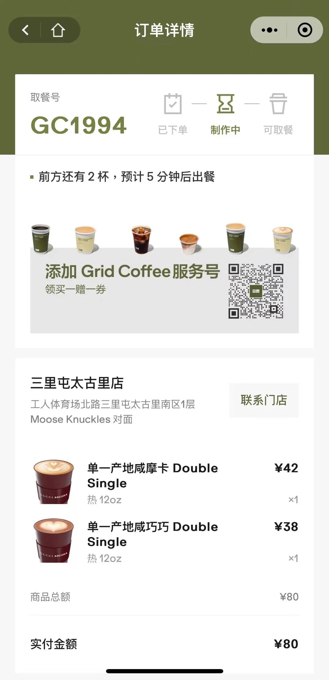 “為了這杯Gucci(Grid Coffee)咖啡,在三里屯等了100多杯,排隊一小時才喝上。”