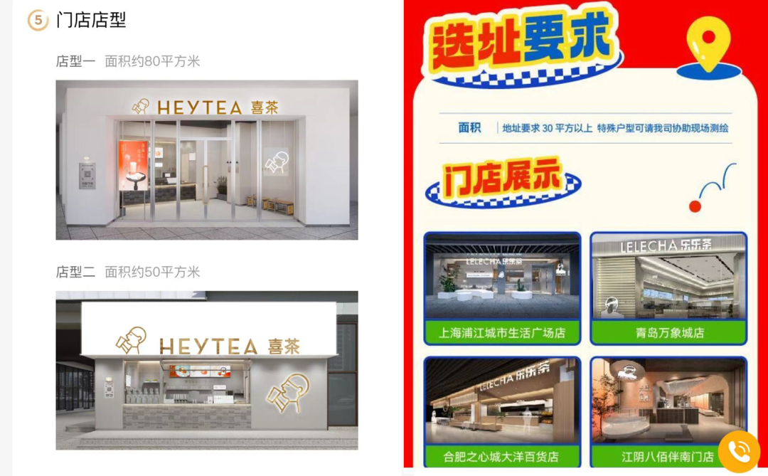 喜茶對于合伙人門店的面積要求,有50和80平米兩檔,奈雪的茶將加盟店的起始面積從90-170平米直降至40平米起;樂樂茶甚至僅要求30平米以上的空間即可加盟。
