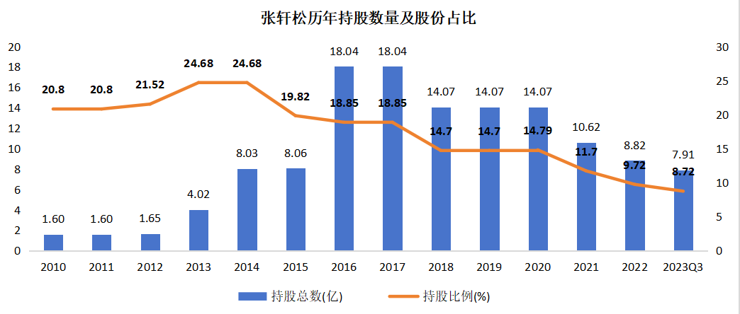 (2)2022年5月,張軒松又以降低個人負債及減少財務(wù)費用為名,通過大宗交易減持公司1.8億股,套現(xiàn)近8億元。