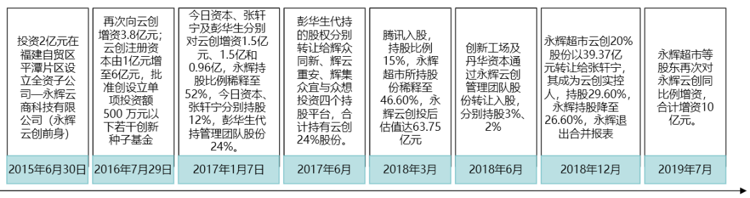 (3)2017年,林芝騰訊科技有限公司(騰訊)通過協(xié)議轉(zhuǎn)讓方式受讓了永輝5%股份;還對永輝控股子公司永輝云創(chuàng)進行了增資,取得云創(chuàng)在該次增資完成后15%的股權(quán)。