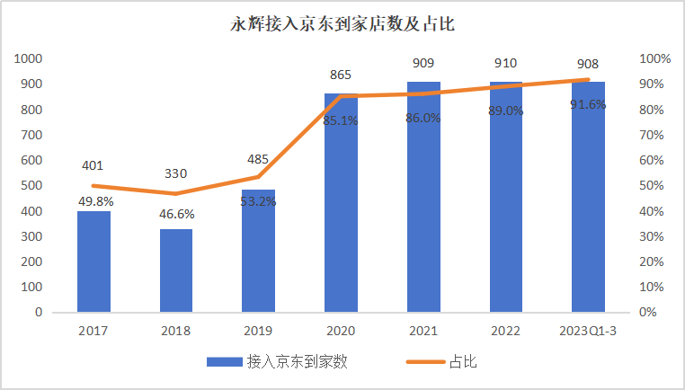 基于股權(quán)投資的合作層面后,京東與永輝從2017年開始就京東到家進行業(yè)務(wù)合作。