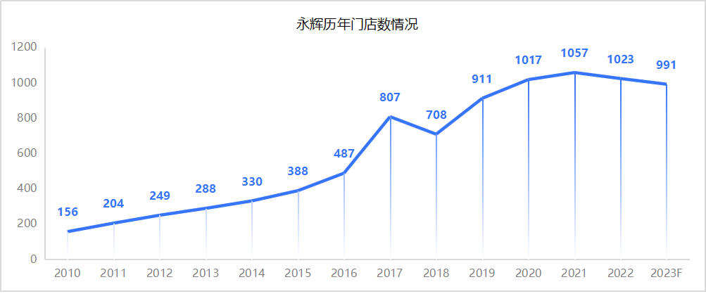 數(shù)據(jù)來源:永輝超市歷年業(yè)績報告