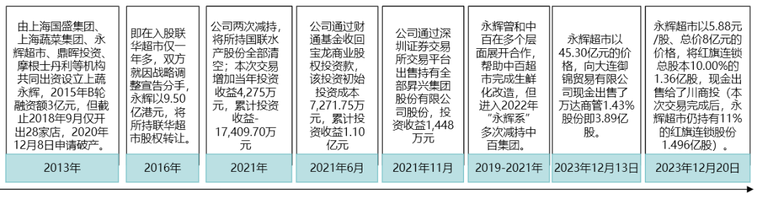 在被投資的同時,永輝也在操作一系列的投資,頻頻入股區(qū)域同業(yè)或產(chǎn)業(yè)鏈企業(yè),力圖資本控制或生鮮輸出,打造“永輝系”。