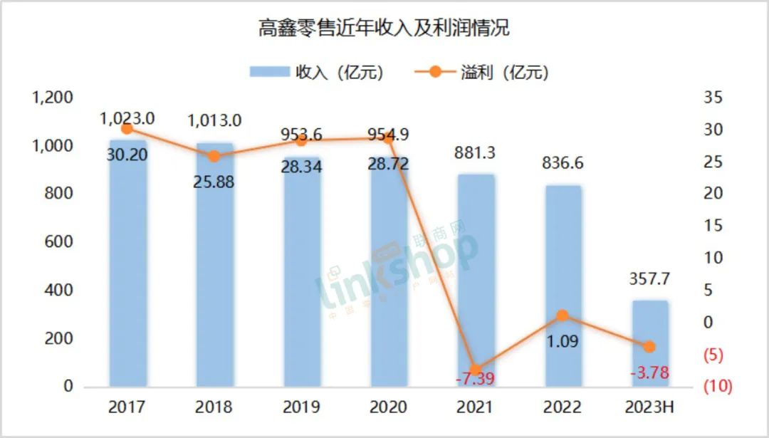 2021年,也即林小海正式執(zhí)掌高鑫零售這一年,頹勢(shì)不斷加強(qiáng),凈虧損達(dá)到7.39億元,同比止盈轉(zhuǎn)虧,上一年同期凈利35.72億元。2024財(cái)年中報(bào)數(shù)據(jù)顯示,高鑫零售業(yè)績(jī)?cè)俣绒D(zhuǎn)虧,營(yíng)收下滑11.9%,凈虧損達(dá)3.78億元,同比擴(kuò)大334.5%。虧損擴(kuò)大的原因在于同店銷(xiāo)售下滑、可比銷(xiāo)售額下滑以及平均客單價(jià)下滑。而自融入阿里體系后,高鑫零售市值已經(jīng)縮水700多億元。