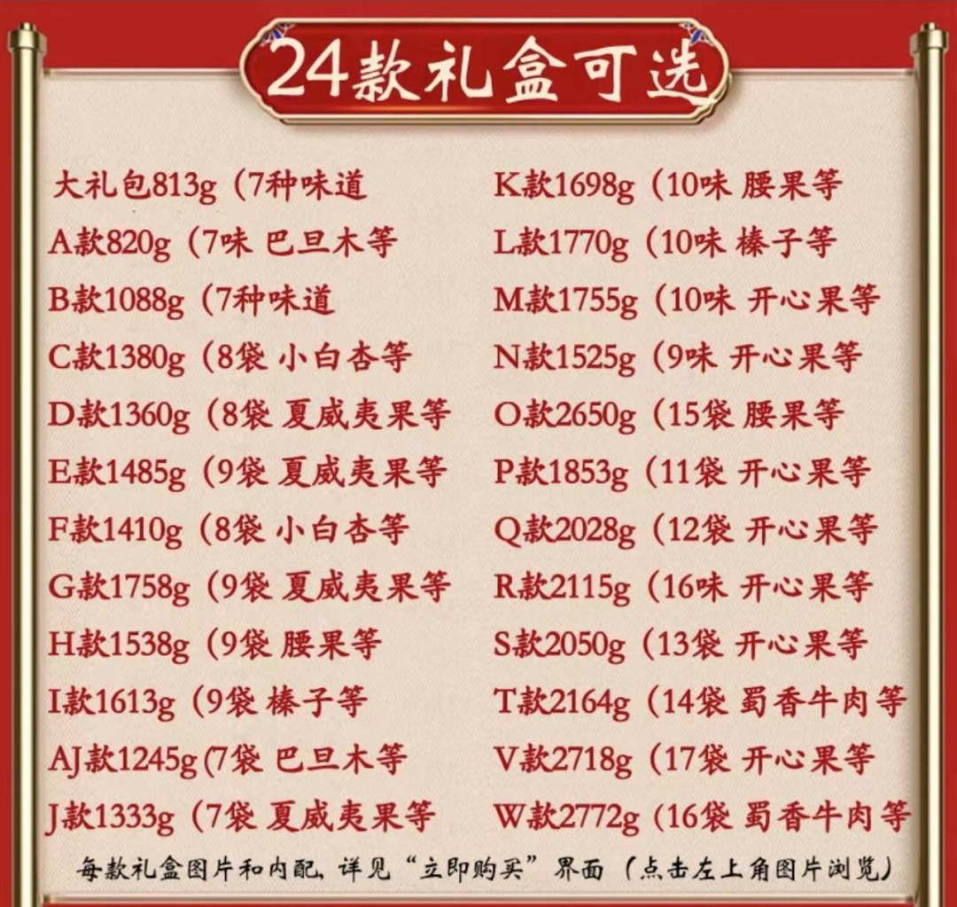 可以看到該平臺(tái)共有24款堅(jiān)果禮盒在出售,已經(jīng)馬上就要到了26個(gè)英文字母都不夠用的地步。