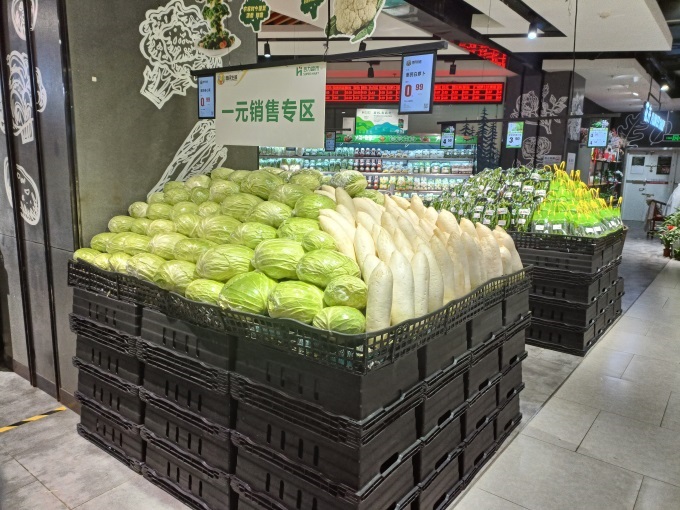 上圖這是我們門(mén)店位置,貴州特產(chǎn)銷售上還是來(lái)源于去年的村超,我們特產(chǎn)分類占比,銷售增長(zhǎng)45個(gè)點(diǎn),毛利是50個(gè)點(diǎn),這兩個(gè)分類在去年整體銷售上有很大的漲幅。接下來(lái)是1元蔬菜專區(qū),因?yàn)樗腔菝裆唐,這個(gè)政府是有嚴(yán)格要求的,所以不管商品漲價(jià)多少,我們就是一元商品專區(qū)。