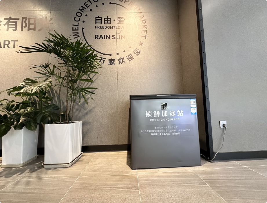 這是我們自助寵物寄存,免費飲水,用心呵護,這是我們的便民措施改進的一部分。顧客免費加冰增值服務,商品鎖鮮,這也是體現(xiàn)了顧客服務的細節(jié)之處。