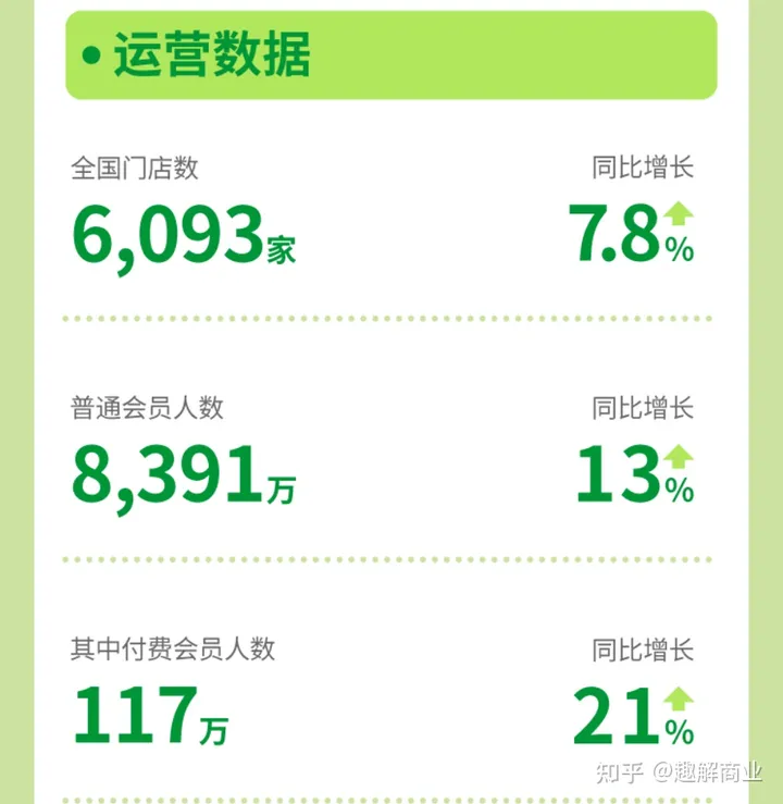 其次,百果園的門店數(shù)量、普通會(huì)員數(shù)量以及付費(fèi)會(huì)員數(shù)量也有不同程度地增加。付費(fèi)會(huì)員數(shù)量為117萬(wàn),同比增長(zhǎng)21%,普通會(huì)員數(shù)量為8391萬(wàn),同比增長(zhǎng)13%。相較之下,全國(guó)門店數(shù)量增幅不算大,但也有7.8%,達(dá)到6093家。