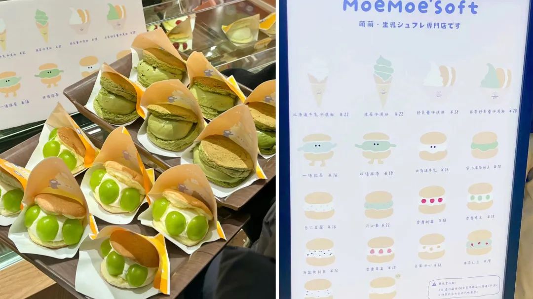 門店模型、產品和fufuland很相似,但產品上創(chuàng)新出了 “冰心”舒芙蕾這種新概念。