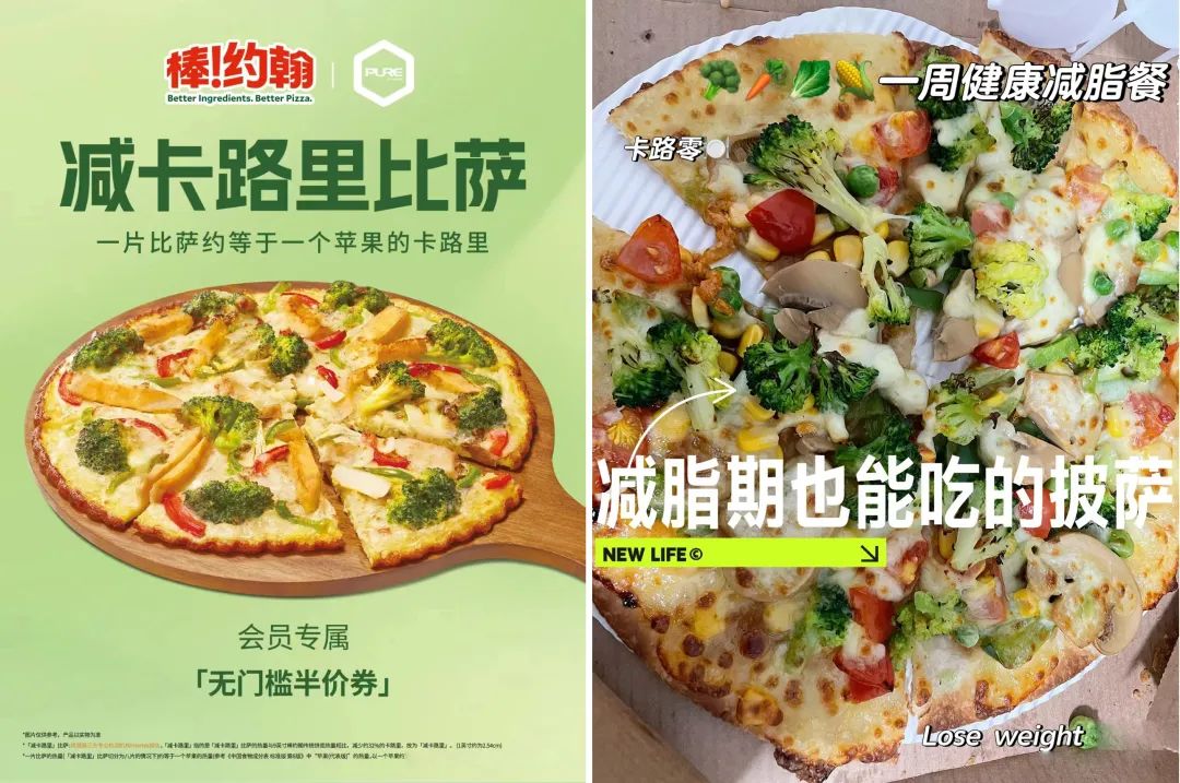 再以披薩為例,有一個(gè)連鎖品牌棒約翰,采用了輕食中“降熱量”的概念,成功將原本高熱量的披薩改造,推出業(yè)界首創(chuàng)的無餅底“減卡路里披薩”,熱量僅相當(dāng)于一個(gè)蘋果。