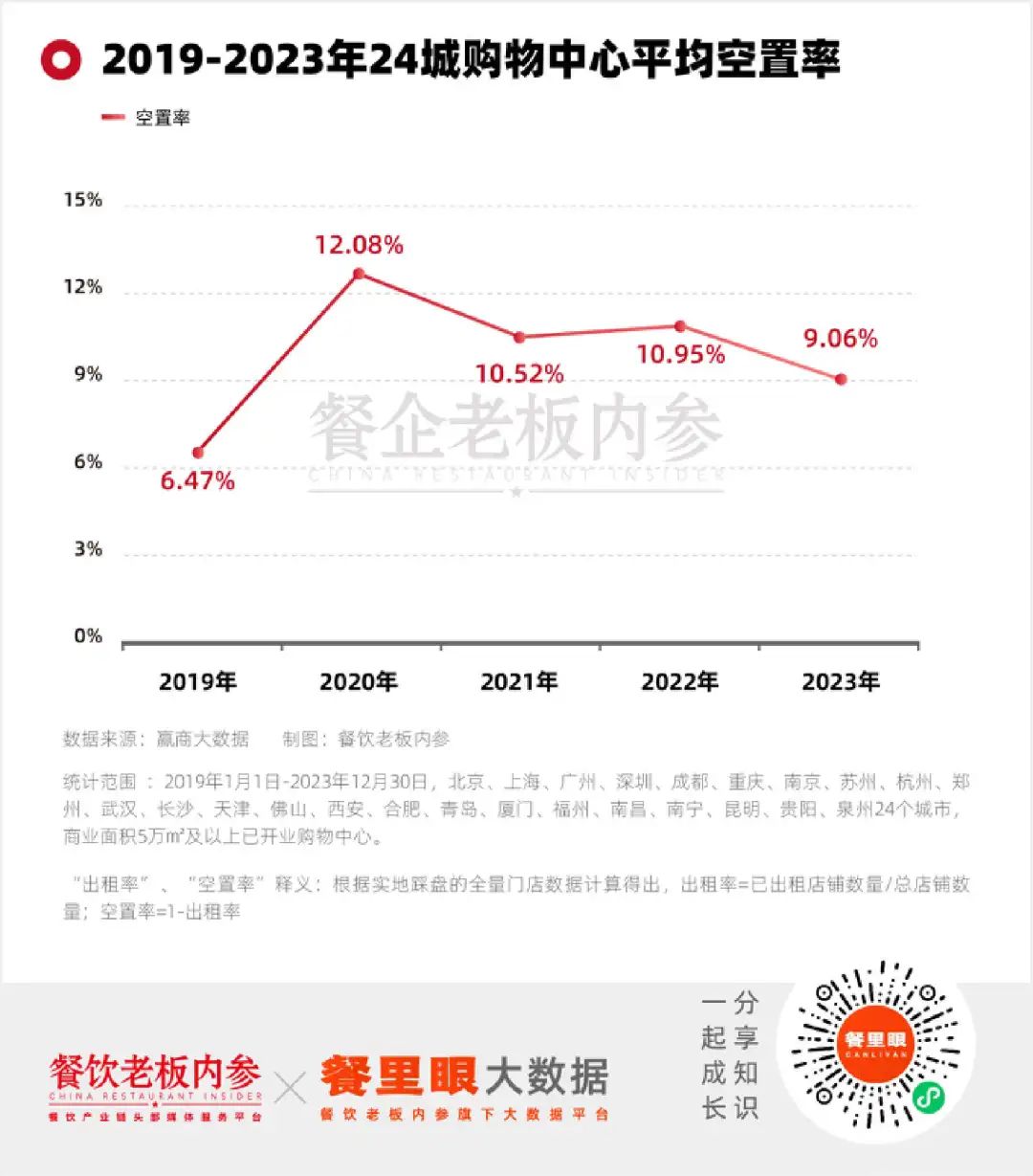 最近,一組數(shù)據(jù)引起了內(nèi)參君的關(guān)注:大數(shù)據(jù)顯示,2023年,全國重點(diǎn)24城購物中心平均空置率9.06%,同比2022年下降近2個(gè)百分點(diǎn)。其中,出租率超95%的購物中心占比近五成。