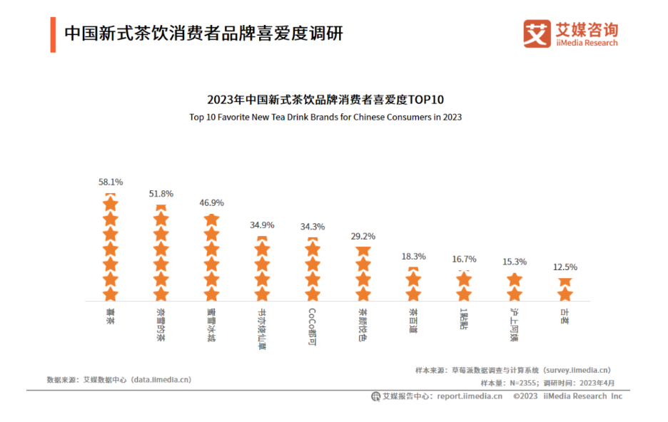艾媒咨詢《中國新式茶飲消費品牌喜愛度調(diào)研》顯示,2023年中國新式茶飲品牌消費者喜愛度TOP10榜單中,滬上阿姨排名第九,僅有13.5%。