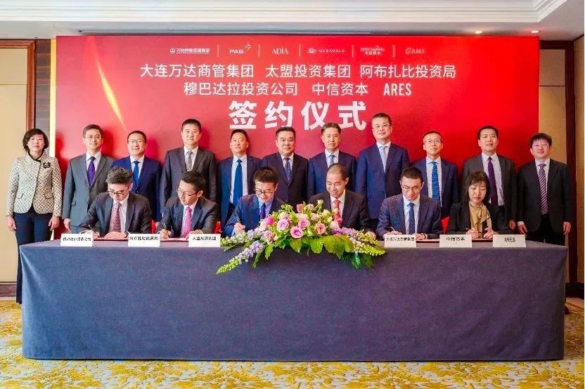 3月30日,太盟投資集團、中信資本、Ares Management旗下基金(Ares)、阿布扎比投資局(ADIA)旗下全資子公司Platinum Peony以及穆巴達拉投資公司(Mubadala Investment Company)聯(lián)合向大連新達盟商業(yè)管理有限公司注資600億元,持股比例達60%,而大連萬達商管則持有40%的股份。