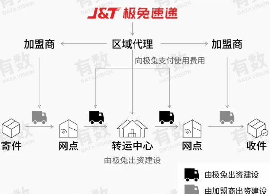 對(duì)比之下,極兔的區(qū)域加盟商模式地區(qū)合作商需要出資和極兔共同參與轉(zhuǎn)運(yùn)中心和干線運(yùn)輸?shù)慕ㄔO(shè),相當(dāng)于極兔將資金壓力給到地區(qū)合作商。且全國(guó)多個(gè)地區(qū)合作商同時(shí)建設(shè)下,網(wǎng)絡(luò)中心能迅速鋪開,疊加極兔前期通過(guò)低價(jià)搶奪市場(chǎng)份額,正是極兔僅有1年時(shí)間就能在全國(guó)迅速起網(wǎng)迅速發(fā)展的原因。