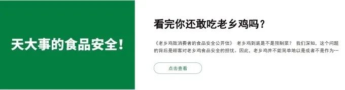 4月8日,老鄉(xiāng)雞微信公眾號和官網(wǎng)同時發(fā)布了以“看完你還敢吃老鄉(xiāng)雞嗎?”為標(biāo)題的公開信: