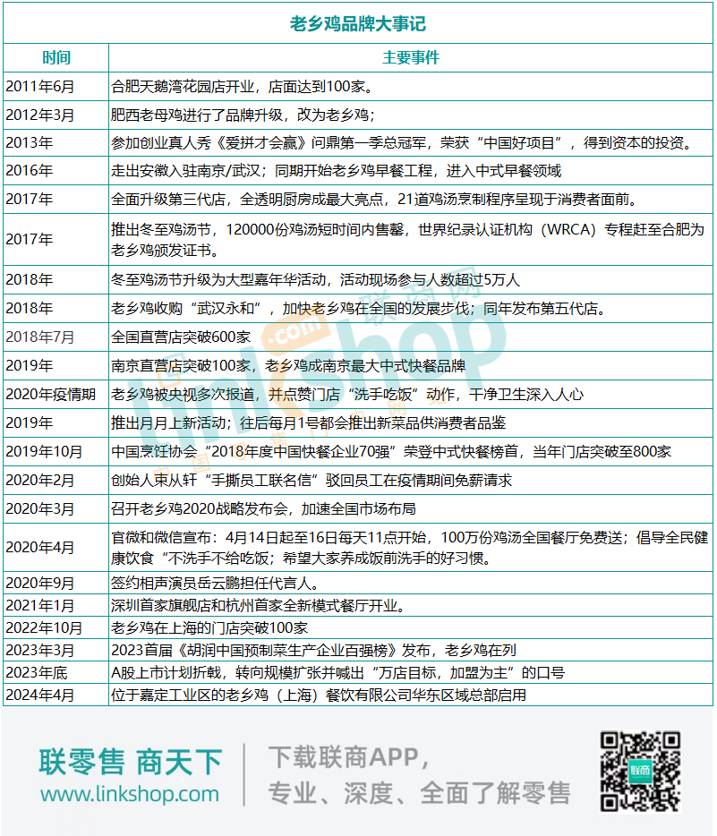 2003年10月初,束大鮮第四代傳人束從軒在合肥市舒城路上,開設(shè)了第一家“肥西老母雞”餐飲店,經(jīng)過20年的蓬勃發(fā)展,老鄉(xiāng)雞從一家名不見經(jīng)傳的快餐店,如今是可以比肩肯德基、麥當(dāng)勞的中式快餐第一品牌。
