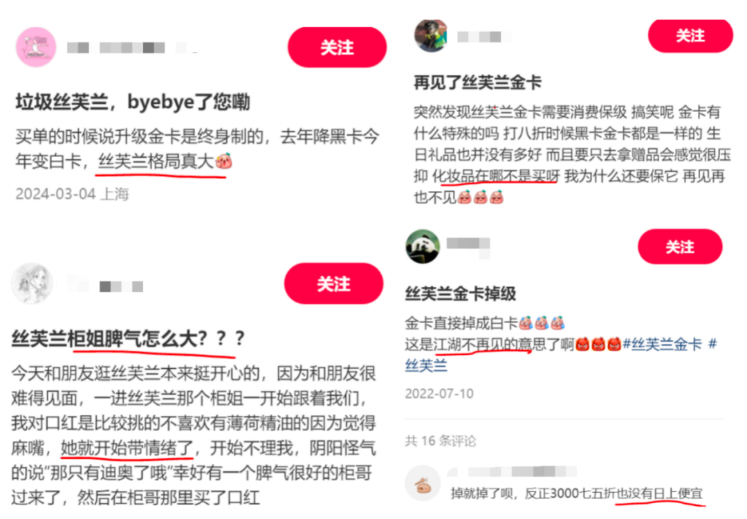 價(jià)格不占優(yōu)勢(shì)的絲芙蘭,門店服務(wù)也多遭人詬病。