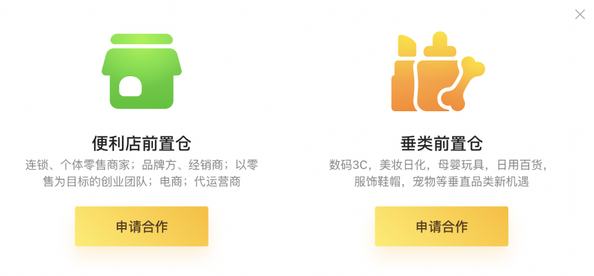 大部分的閃電倉都以快消日百作為主要的經(jīng)營品類,倉儲環(huán)境要求不高,因為是純線上經(jīng)營,對門店、裝修、員工等要求都很低,甚至可以是地下室,這種輕成本帶來的效果就是擴張快,在官網(wǎng)也能看到很多的案例介紹。