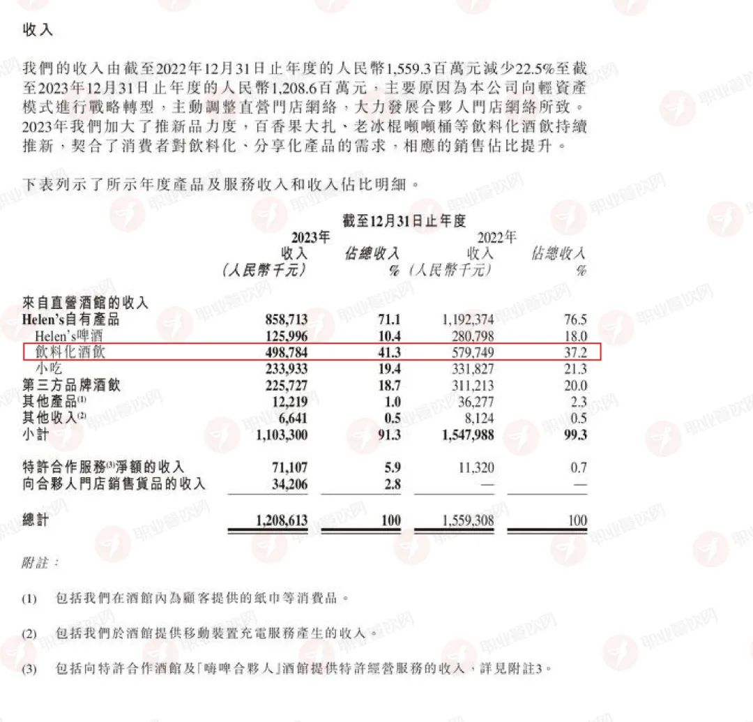 而財(cái)報(bào)數(shù)據(jù)中,職餐記者發(fā)現(xiàn),在其總營(yíng)收占比上,純酒飲居然不是占比最高的。