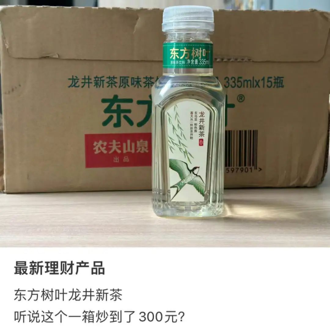 如今這瓶335毫升的龍井新茶化身新一代理財產(chǎn)品,8元的原價被已經(jīng)被黃牛們炒到40元以上。更有人為了出貨叫賣道:“這飲料是【液體黃金】,包治百病!