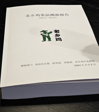 這份報(bào)告是在老鄉(xiāng)雞召開了一場(chǎng)嚴(yán)肅的自省會(huì)議,組織相關(guān)部門從食材產(chǎn)地到餐廳出品的全鏈路仔細(xì)梳理了一遍后撰寫的,溯源范圍覆蓋老鄉(xiāng)雞當(dāng)前1218家餐廳,共計(jì)677頁共20萬字。