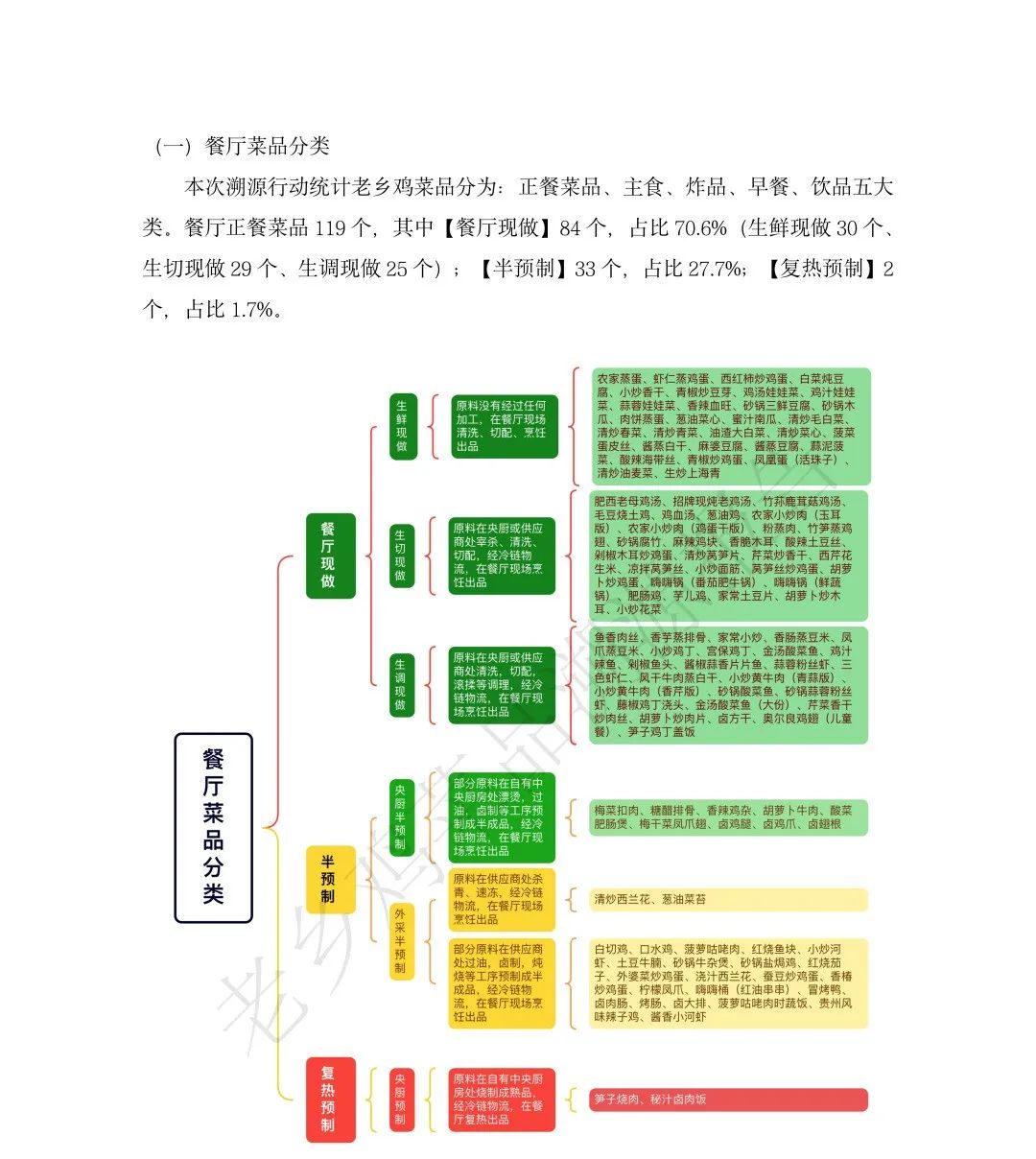 而根據(jù)這份《老鄉(xiāng)雞菜品溯源報(bào)告》顯示,老鄉(xiāng)雞當(dāng)前正餐菜品中“餐廳現(xiàn)做”占比70.6%,“半預(yù)制”占比27.7%,“復(fù)熱預(yù)制”占比1.7%。