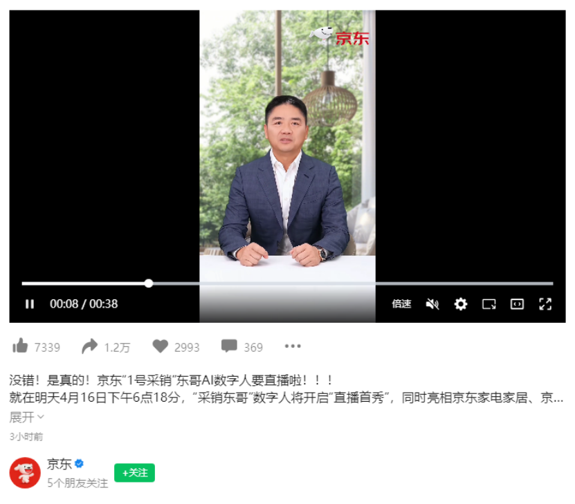 隨后京東回應(yīng)稱:屬實(shí),采用AI數(shù)字人形式。