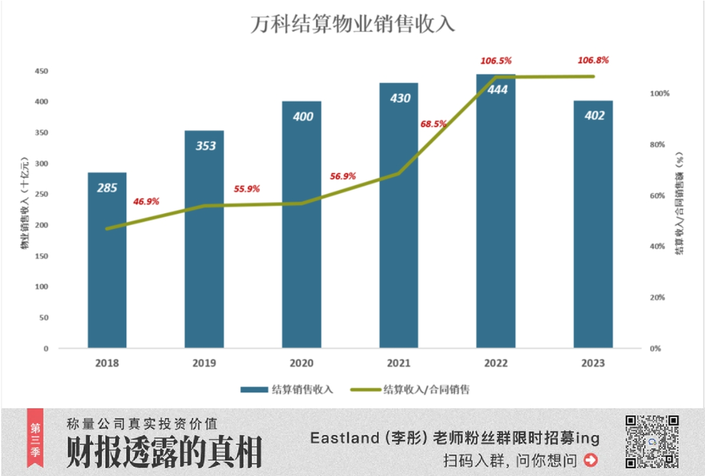 2022年,合同銷售4169.7億,結(jié)算4444億,相當于合同銷售額的106.6%.
