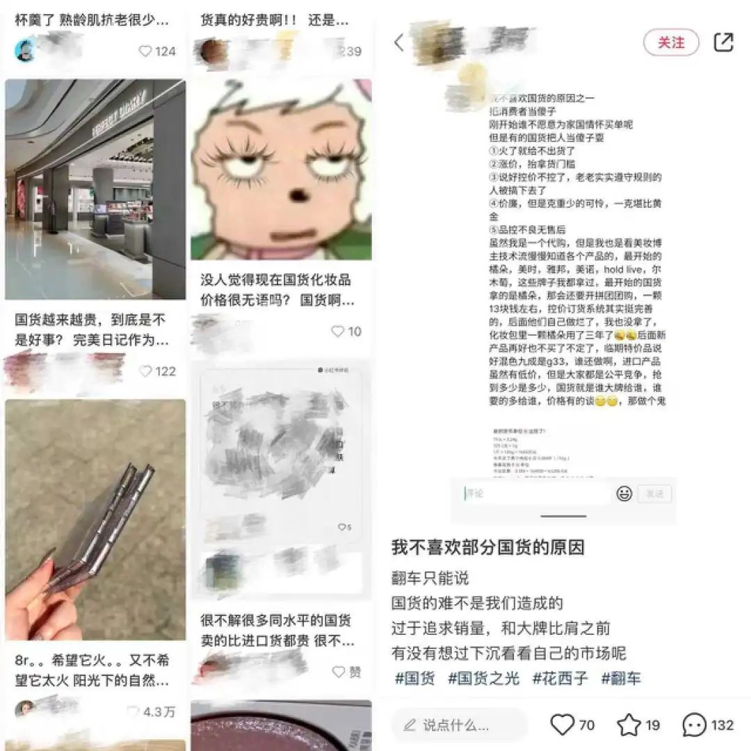 在社交平臺上,不少內(nèi)容直言對國貨美妝“開始失望”,這些內(nèi)容直指國貨美妝“貴、虛假宣傳”,以及“除了仿、抄、跟,還有什么?”