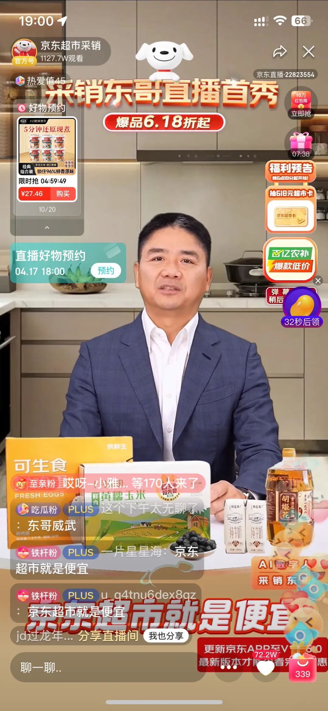 4月16日下午6點18分,網(wǎng)友們發(fā)現(xiàn),自“明州事件”以后,一直在幕后運籌帷幄、幾乎不再公開露面的劉強東空降京東超市、京東家電家居采銷直播間,當起了帶貨主播。