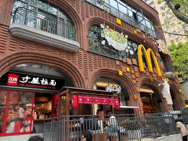 寸屋拉面中國坐落于繁華的徐家匯商圈,地址為天鑰路1號(hào)。與麥當(dāng)勞徐家匯旗艦店相鄰,后者原址重開,是不少本地消費(fèi)者的「童年回憶」。徐家匯不僅是上海的老牌商圈,也是市內(nèi)重要的交通樞紐,雖然目前有多個(gè)項(xiàng)目同時(shí)閉店改造和拆除重建,但該區(qū)域依然不缺少流量,年輕人齊聚、中高端消費(fèi)也極具活力。