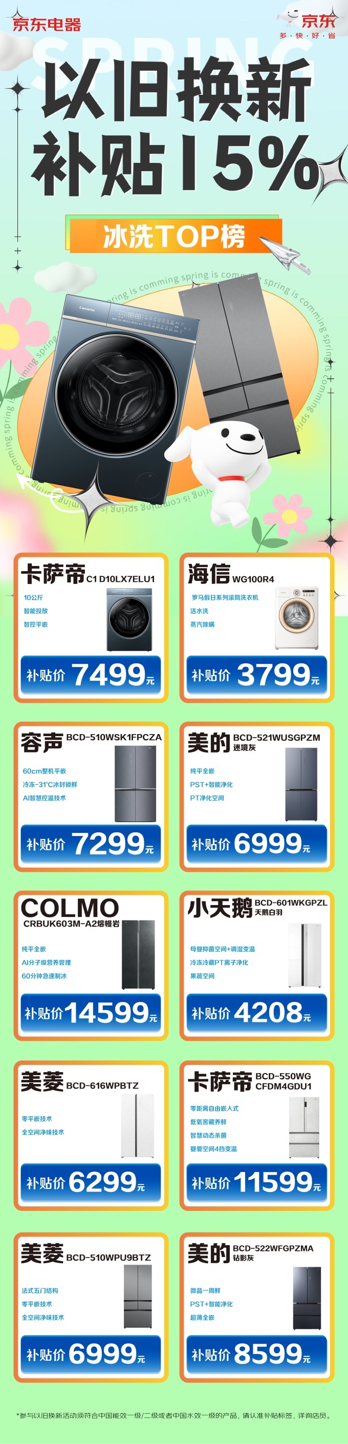 氣溫逐漸回暖,食物保鮮問(wèn)題、貼身衣物換洗頻繁等生活小煩惱出現(xiàn),疊加家電以舊換新政策利好,家中保鮮功能老化的舊冰箱和洗滌效果不佳的老舊洗衣機(jī)被提上日程。3月起,京東電器各大自營(yíng)門店的冰箱、洗衣機(jī)品類以舊換新訂單快速增長(zhǎng),新一級(jí)能效、AI保鮮、零嵌冰箱;洗烘一體機(jī)、智控活水洗衣機(jī)呈煥新趨勢(shì)。為此,京東電器發(fā)布冰箱、洗衣機(jī)品類“以舊換新熱門榜單”,有煥新需求的消費(fèi)者們可直接“抄作業(yè)”。