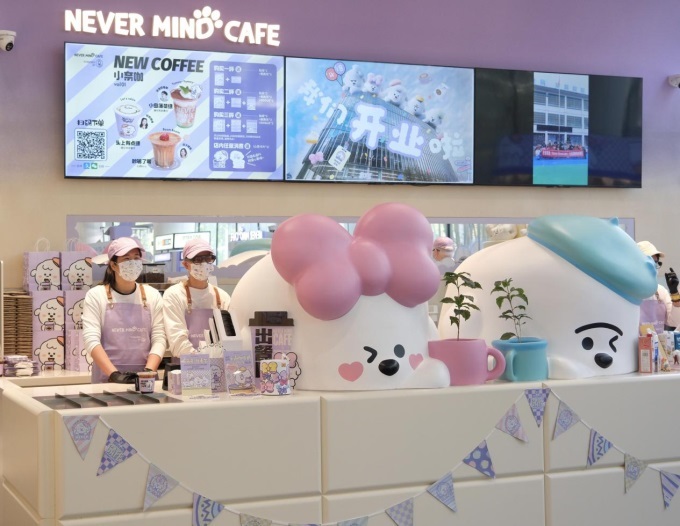 此次線下店鋪的正式對外營業(yè),不僅將綜藝《奈娃家族的上學日記2》里的限定版“NEVER MIND CAFE”變成了現(xiàn)實,門店布置上更真實還原了奈娃家族咖啡店小游戲的設(shè)計。