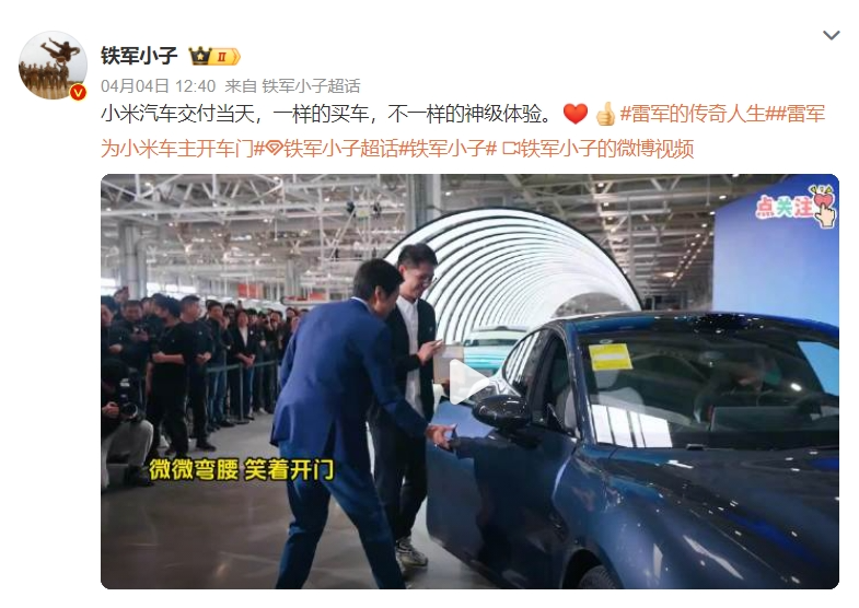 “千億老板給開車門”、“被世界500強企業(yè)的總裁親自為我開車門”......這些對雷軍在小米SU7交付現(xiàn)場給用戶開車門的調(diào)侃,道盡了緣由——“親民”。