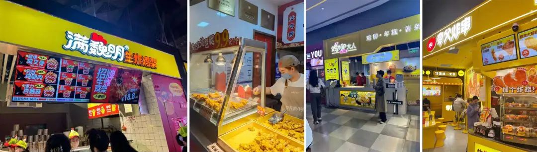 2024年開(kāi)年,夸父炸串官宣,近5億元B輪融資,一個(gè)街頭小吃成長(zhǎng)為2000多家店的連鎖品牌,門店遍布各大商場(chǎng);新晉的“商場(chǎng)網(wǎng)紅頂流”滿巍明生炸雞架,目前全國(guó)已經(jīng)開(kāi)出約430家店;蜜雪冰城跨界賣炸串,登上微博熱搜……