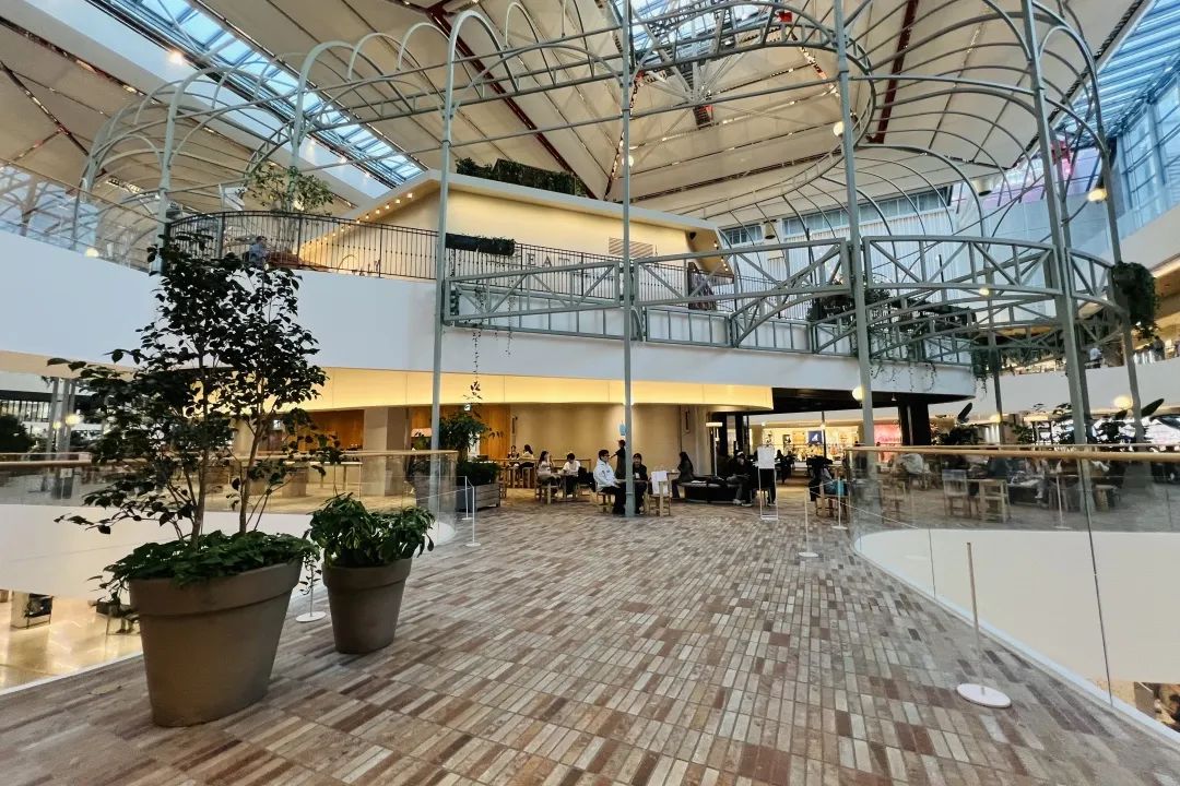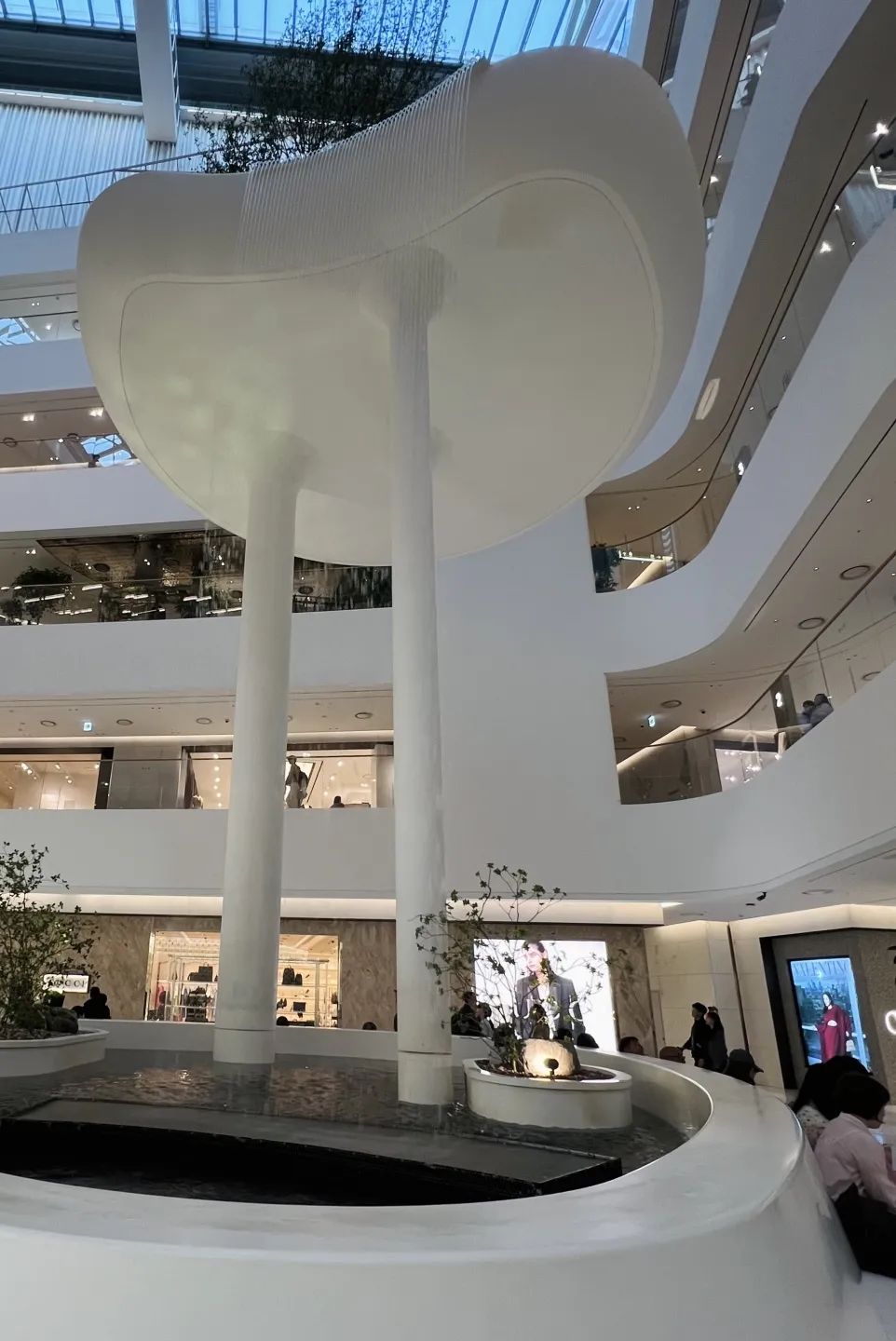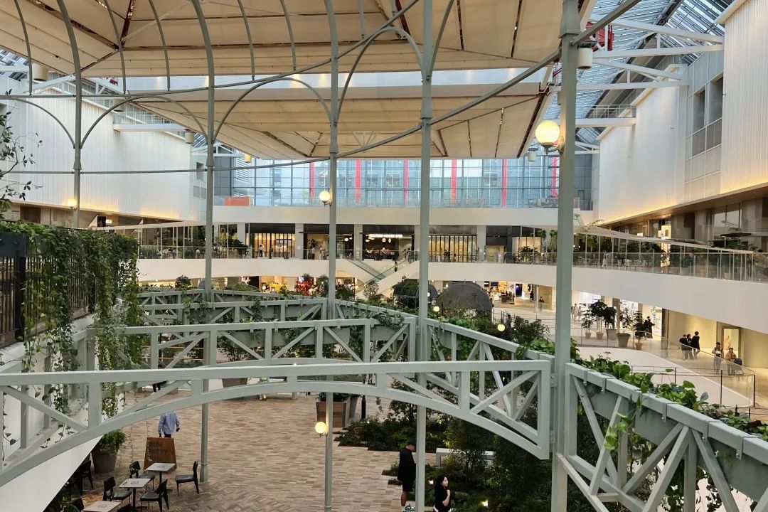 站在1層仰視向上時,還能看到遍布每個樓層的綠植從欄桿處探出枝頭,給人一種在公園中購物的全新體驗感。