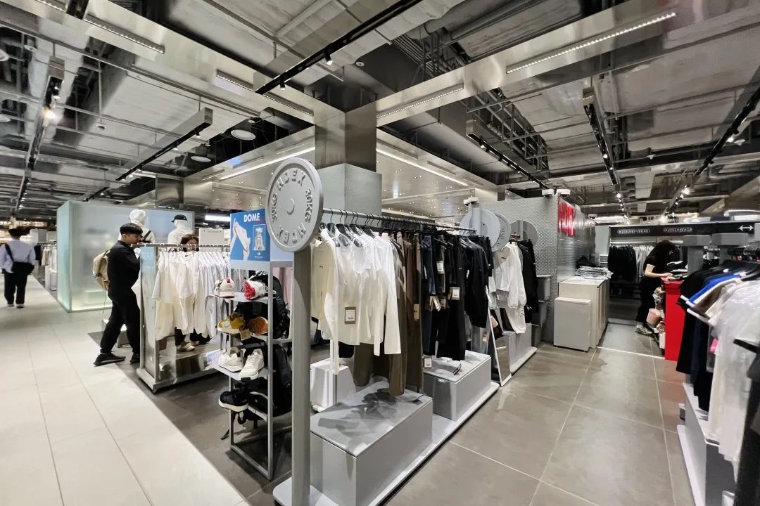 聚集年輕品牌的B2層零售區(qū),交由同樣來自韓國的設(shè)計公司Betwin Space,裸露的金屬式頂部管道設(shè)計,碰撞出了充滿年輕力的工業(yè)風(fēng)。