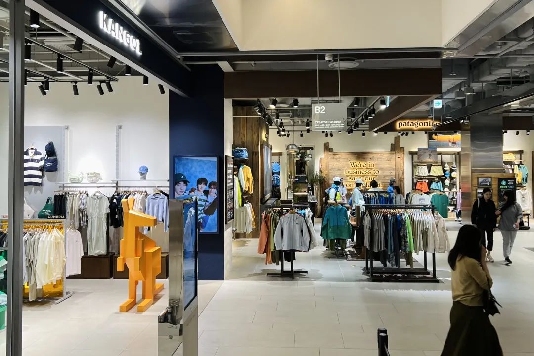 如今,這里能看到環(huán)保戶外品牌Patagonia、NIKE RISE概念店、人氣潮牌KANGOL。