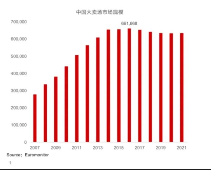 傳統(tǒng)大賣場在中國有6300億規(guī)模。受到電商、新零售等持續(xù)沖擊,其生意模式不再有效,市場份額正在出讓。從2016年開始出現(xiàn)拐點(diǎn)。