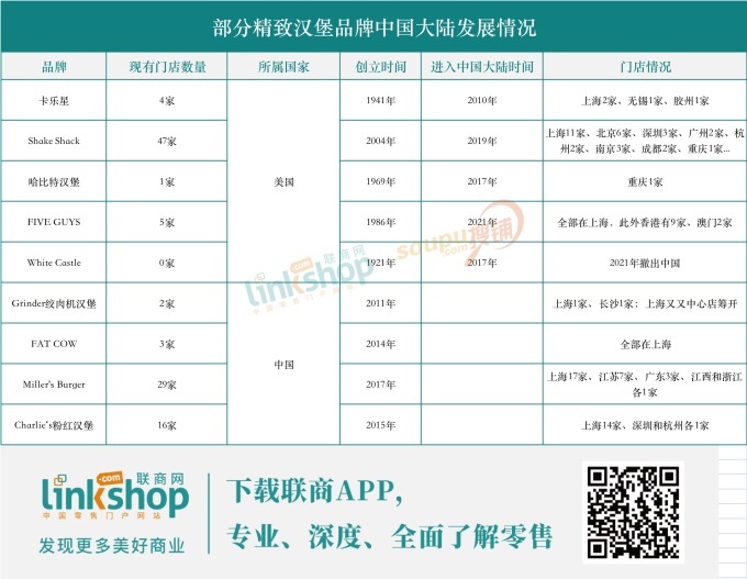 一方面,品牌規(guī)模在縮減!堵(lián)商網(wǎng)》統(tǒng)計(jì)了部分精致漢堡目前在中國(guó)大陸的情況發(fā)現(xiàn),多數(shù)品牌的擴(kuò)張速度在放緩,且包括卡樂(lè)星、哈比特以及White Castle等品牌都在逐漸退場(chǎng)。