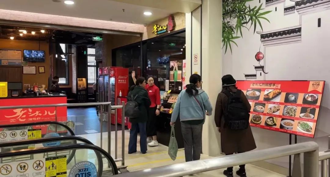 4樓人氣相對(duì)3樓旺一些,但也非常有限。作為餐飲樓層,飯店也看不到幾位顧客。別處飯點(diǎn)座無(wú)虛席的“老頭兒油爆蝦”,在這里也僅有幾桌顧客在用餐。