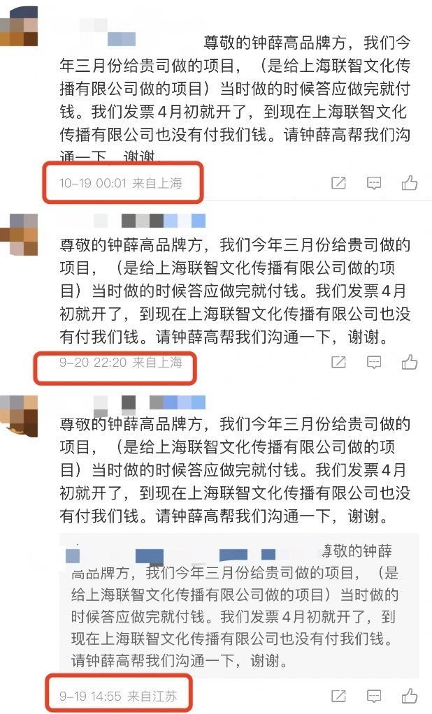 2023年10月,有多名自稱鐘薛高員工的網(wǎng)友在社交平臺(tái)爆料,稱鐘薛高“欠薪”,要求還錢。