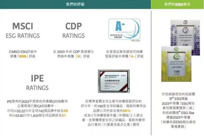 在今年最新發(fā)布的ESG報(bào)告中顯示,2024年2月安踏集團(tuán)在MSCI ESG評(píng)級(jí)中獲得“BBB”評(píng)級(jí),1年中連升2個(gè)級(jí)別,進(jìn)步最快,并成為中國(guó)體育用品行業(yè)中評(píng)分最高的公司。安踏將持續(xù)響應(yīng)國(guó)家“雙碳”戰(zhàn)略,不斷推動(dòng)科技創(chuàng)新及發(fā)展綠色科技的轉(zhuǎn)型,堅(jiān)持長(zhǎng)期主義的使命驅(qū)動(dòng),向更好地實(shí)現(xiàn)與社會(huì)、與環(huán)境“共生價(jià)值”的價(jià)值理念邁進(jìn)。