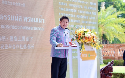 泰國農(nóng)業(yè)與合作社部部長塔瑪納(Thamanat Prompow)、中國駐泰國大使館經(jīng)濟商務處參贊張瀟瀟、百果園集團創(chuàng)始人、董事長余惠勇等一行出席會議并致辭。