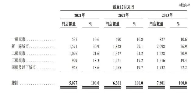 從門店數(shù)量來(lái)看,茶百道最新的上市文件披露,截至2024年4月5日,其在中國(guó)共有8016家門店(其中直營(yíng)店6家),遍布全國(guó)31個(gè)省市,實(shí)現(xiàn)中國(guó)所有省份及各線級(jí)城市的全覆蓋。