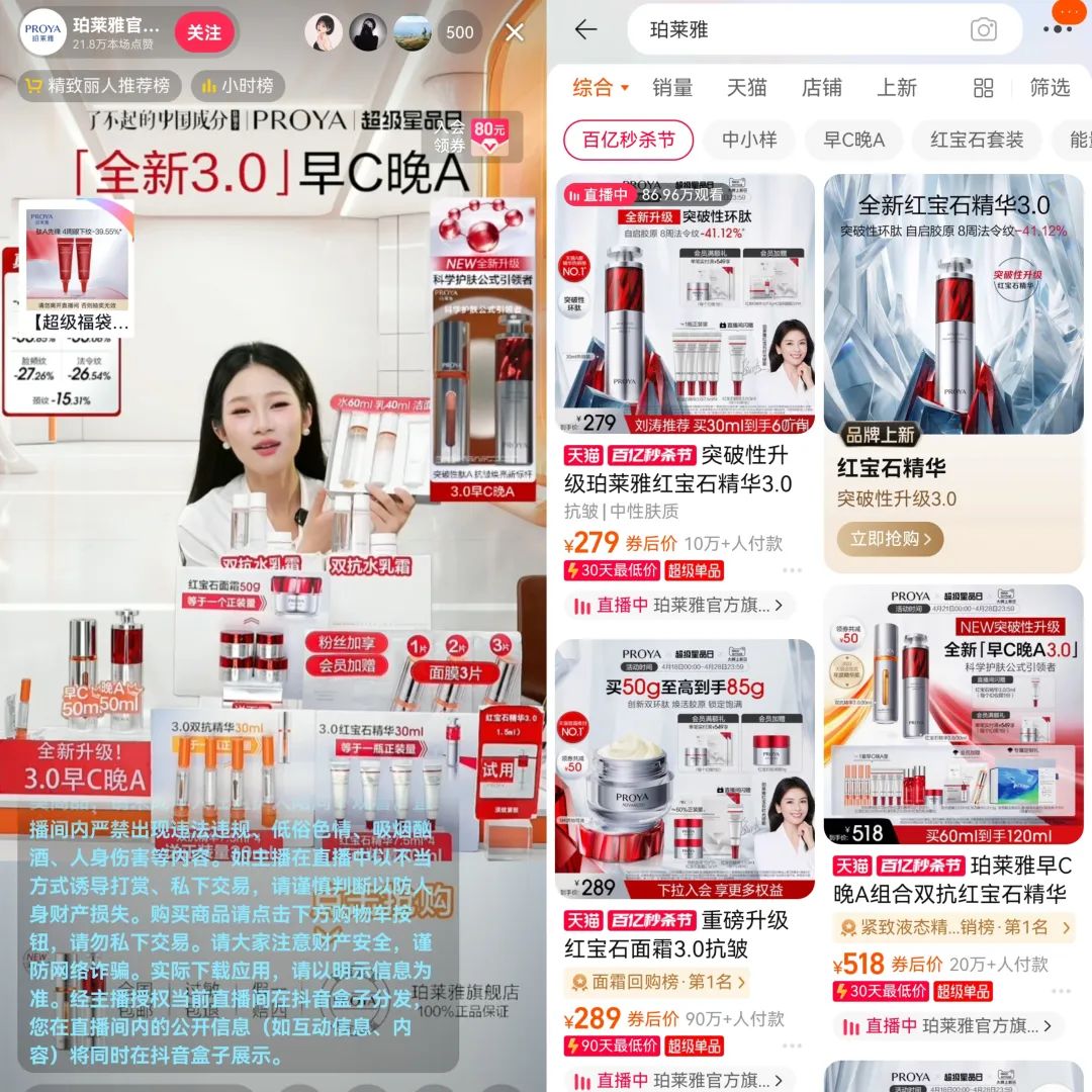 還有一組更為令人震驚的數(shù)字足以證明珀萊雅對(duì)于all in直播帶貨的決心——珀萊雅在抖音布局的帶貨主播高達(dá)1943位,兼顧了垂類(lèi)主播與泛品類(lèi),素人主播與明星帶貨,其中賈乃亮、曹穎、朱梓驍常為珀萊雅的推薦官。