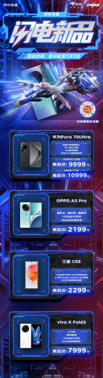華為Pura70系列、OPPO A3 Pro,京東電器五一“閃電新品”來(lái)襲