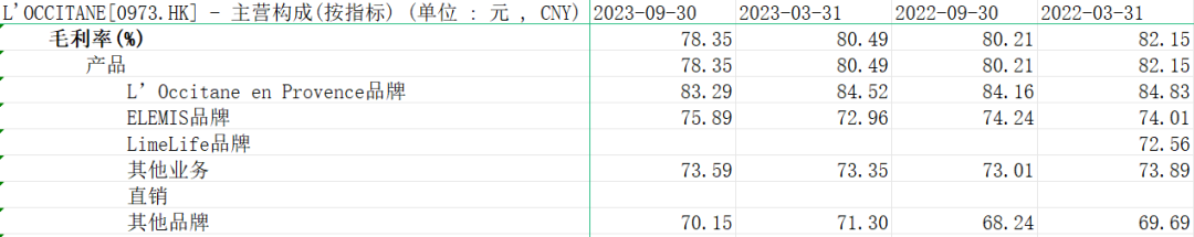 并且值得一提的是,2020年以前歐舒丹已經(jīng)維持了十年的超80%的毛利率水平,遠(yuǎn)超歐萊雅、資生堂、雅詩蘭黛等一眾美妝品牌。