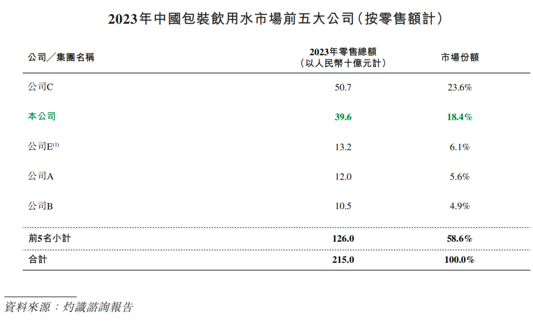 (另根據(jù)資料推測(cè),前五大公司分別為農(nóng)夫山泉、華潤(rùn)飲料、景田、娃哈哈和康師傅)
